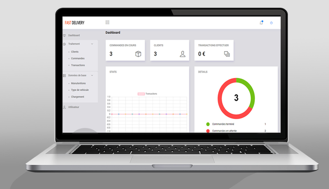 FAST Delivery est une plateforme de gestion de transport de colis et de déménagement. Elle comporte: -une interface web permettant aux clients de choisir le lieu de départ et de destination, le type de van qu'il souhaite, les manutentionnaires, etc. Et de passer leurs commandes. La plateforme lui sort le prix de sa commande qu'il peut payer par PayPal, carte bancaire ou payer sur place s'il le souhaite. - un espace d'administration permettant de gérer et d'organiser l'exécution des commandes; de gerer la comptabilité de façon automatique et d'avoir une statistique sur l'ensemble des activités